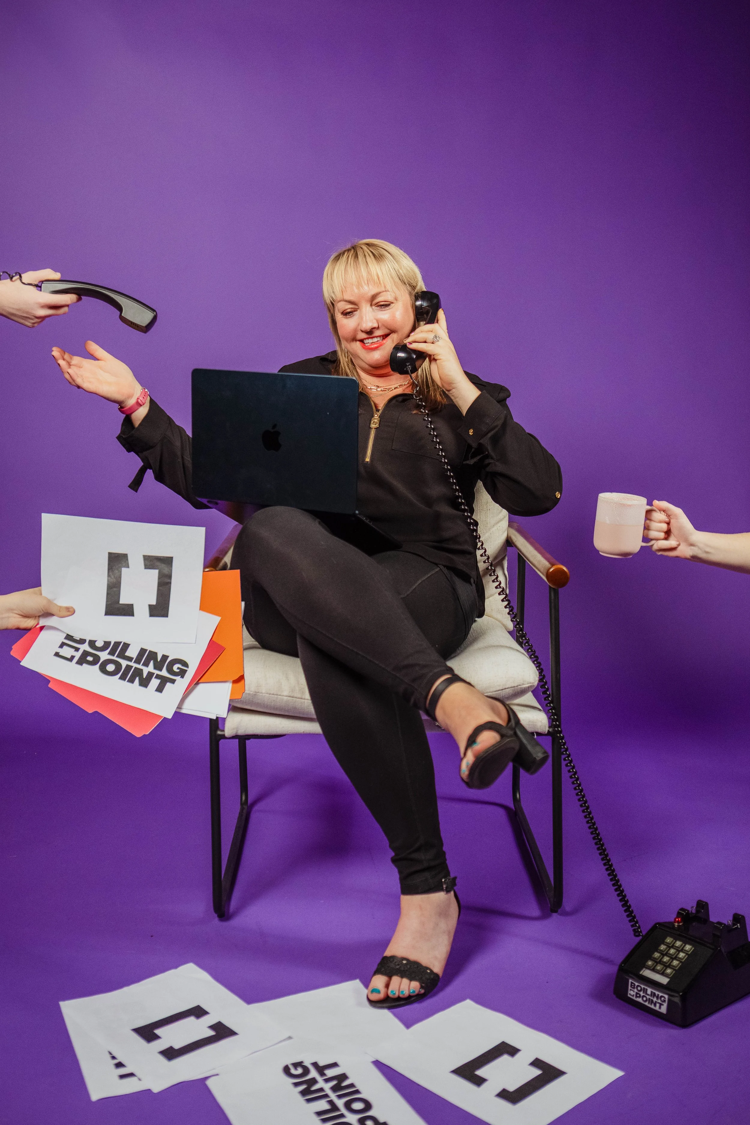 I created a moodbard, style guide, shot list, and schedule for the day of shooting. From our brand guidelines, I selected a few colors for us to pick from for the background, as well as different ways to incorporate hints to job roles into photos. Each employee got multiple black background photos and purple background photos. I was the creative lead, photographer, and editor for this project.
